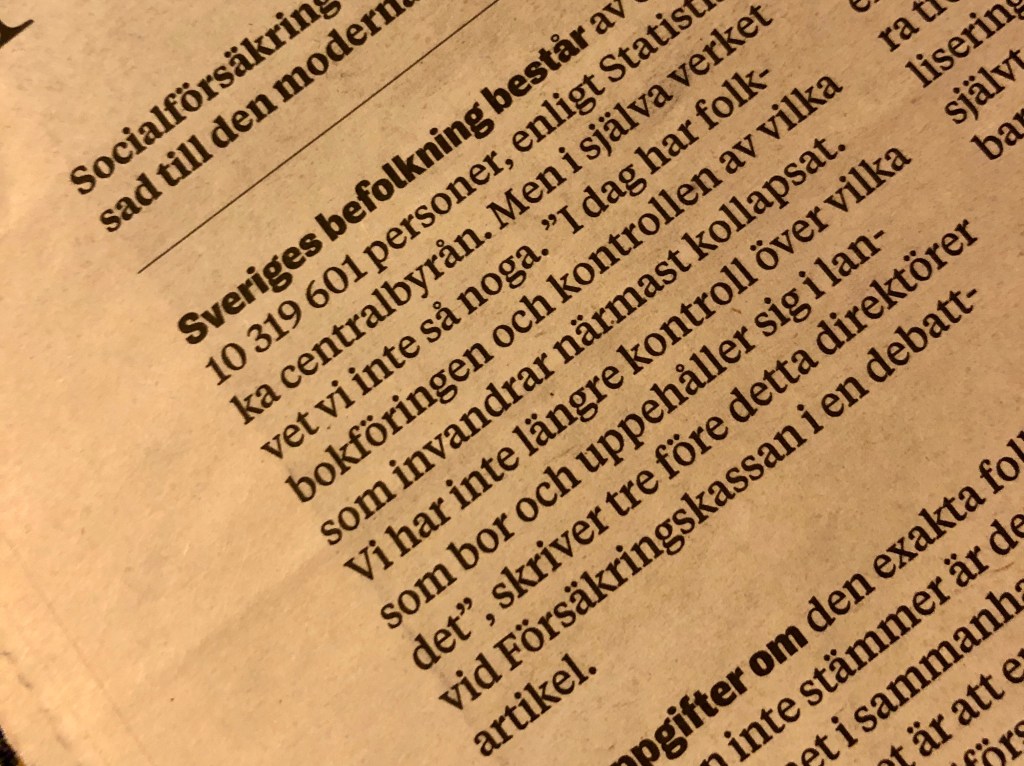 Nyhet 2. Statistiska centralbyrån redovisar ny befolkningsstatistik 10319601 svenskar. Samtidigt kastar myndigheten in brasklappen ”fast vi vet inte så noga”.