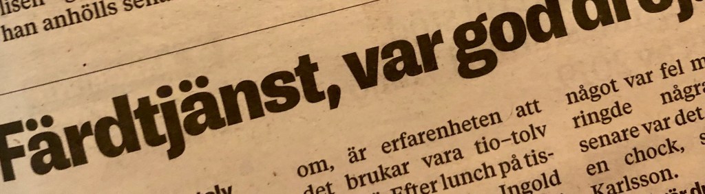 Nyhet 4. Kön till färdtjänst uppgick under tisdagen till 350 samtal! Det låter inte klokt och är inte klokt. KLT försvarar sig med sjukdom och att man prioriterat sjukresor. Det senare är klokt. Men det hindrar inte att Ingold som velat boka av sin resa till idag fredag, inte lyckats. Jag är ledsen att säga det igen. Kalmar läns trafik fortsätter att som man skulle säga norr om Sundsvall – ”oimponera”.