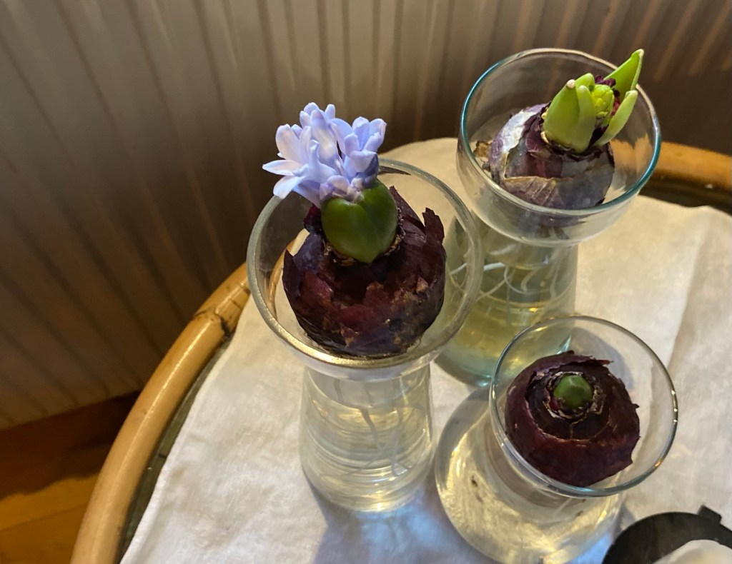 Att de dyrköpta hyacintlökarna inte riktigt skulle ta sig alls var en missräkning. Av 15 blommade två riktigt vackert. De slog ut strax efter nyår och blommade i två veckor.